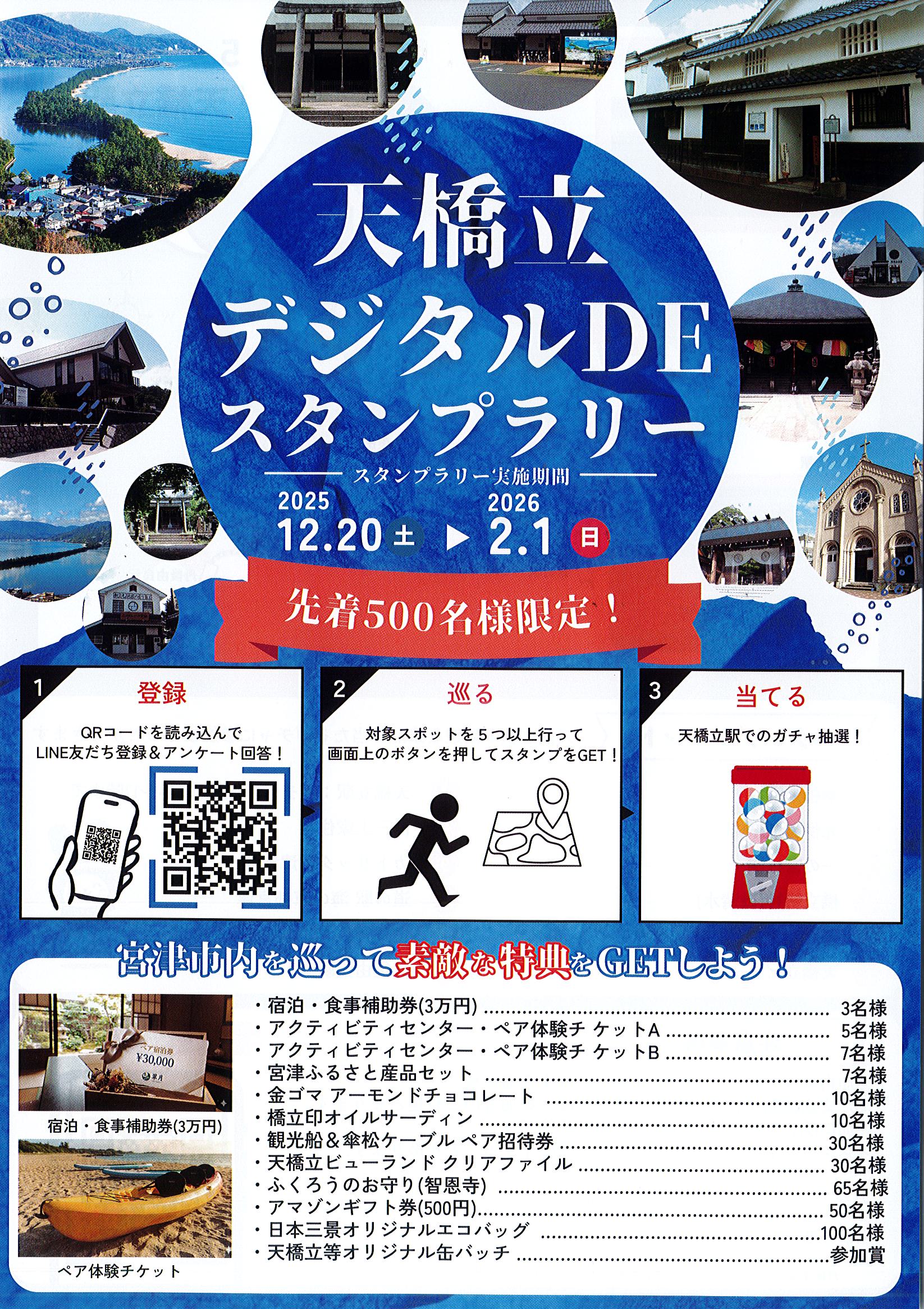 開催期間中にスタンプを5つ集めると、天橋立駅で豪華景品が当たるガチャに参加することができます。(先着500名)